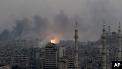 Сирийская обсерватория прав человека сообщает об авиаударах по последним оплотам повстанцев в восточной части города, которую они захватили четыре года назад. Повстанческие районы также подверглись артиллерийскому обстрелу, а сирийское государственное телевидение сообщает, что в результате артобстрелов со стороны повстанцев погибли шесть человек в районе, который был недавно взят под контроль правительством.