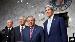 Перед членами комитета выступили госсекретарь Джон Керри, министр обороны Чак Хейгел и глава Объединенного комитета начальников штабов США Мартин Демпси.