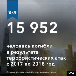 Хотя количество самих террористических атак в мире уменьшилось, их географический масштаб остается широким, пишут авторы отчета: «103 страны зафиксировали по крайней мере один террористический акт в 2018 году, а 71 страна пострадала как минимум от одного смертельного случая».
