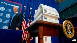 Президент Дональд Трамп во вторник подписал распоряжение, отменяющее нормативы и ограничения для крупных инфраструктурных проектов, введенные администрацией Барака Обамы.