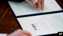 Работа над указом продолжалась несколько недель на фоне сообщений, что он может быть вот-вот подписан. В официальной программе Трампа на понедельник подписание указа не упоминается. Многочисленные предыдущие указы фигурировали в программах на день, распространяемых Белым домом.