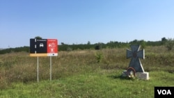 Степь, жара, крест в память погибших украинских бойцов и табличка «Не съезжайте на обочину! Мины!» – это окрестности украинского КПВВ «Золотое».