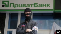ПриватБанк пострадал от действий сепаратистов после того, как его совладелец Игорь Коломойский был назначен главой администрации соседней Днепропетровской области и вскоре назначил награду в 10 тысяч долларов за поимку российских «саботажников».