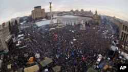 За день до визита президента Украины в Москву заполнившие центр Киева участники протестов призывают Януковича не подписывать соглашение о торговле с Россией.