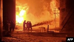 Спустя десять часов после сообщения об атаке пожар всё ещё не потушен, но локализован. На месте работают 165 человек и 35 единиц техники, сообщает Старовойт.
