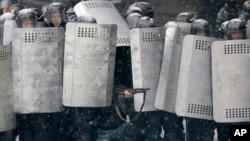 В среду утром полицейских, попытавшихся штурмовать баррикады возле Площади Независимости, забросали камнями и бутылками с зажигательной смесью.