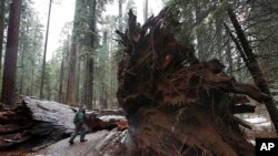 В Калифорнии упала гигантская секвойя, известная тем, что через нее был проделан туннель.