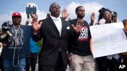 Более ста демонстрантов приняли участие в мирном шествии в Сент-Луисе, требуя арестовать белого полицейского, застрелившего безоружного чернокожего юношу в Фергюсоне, штат Миссури, около трех недель назад.