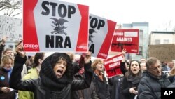 «Позор НСА!» – скандировали сотни участников акции протеста у штаб-квартиры Национальной стрелковой ассоциации в окрестностях Вашингтона.