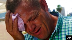Сотрудники зоопарка в Фениксе поливают слонов водой из шлангов. Власти также предупреждают родителей и владельцев домашних животных не оставлять детей и питомцев в машинах, где температура очень быстро поднимается до смертельно опасного уровня.