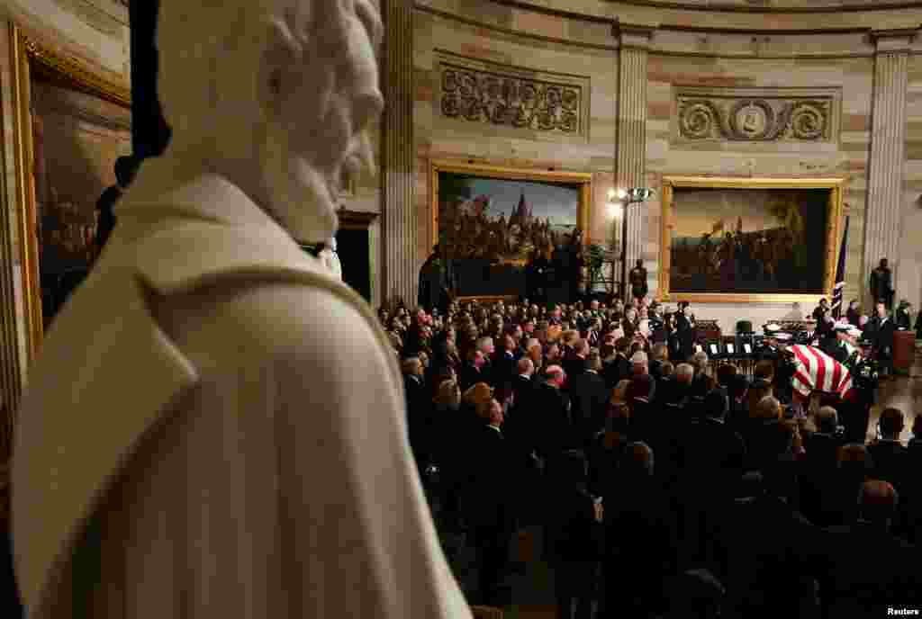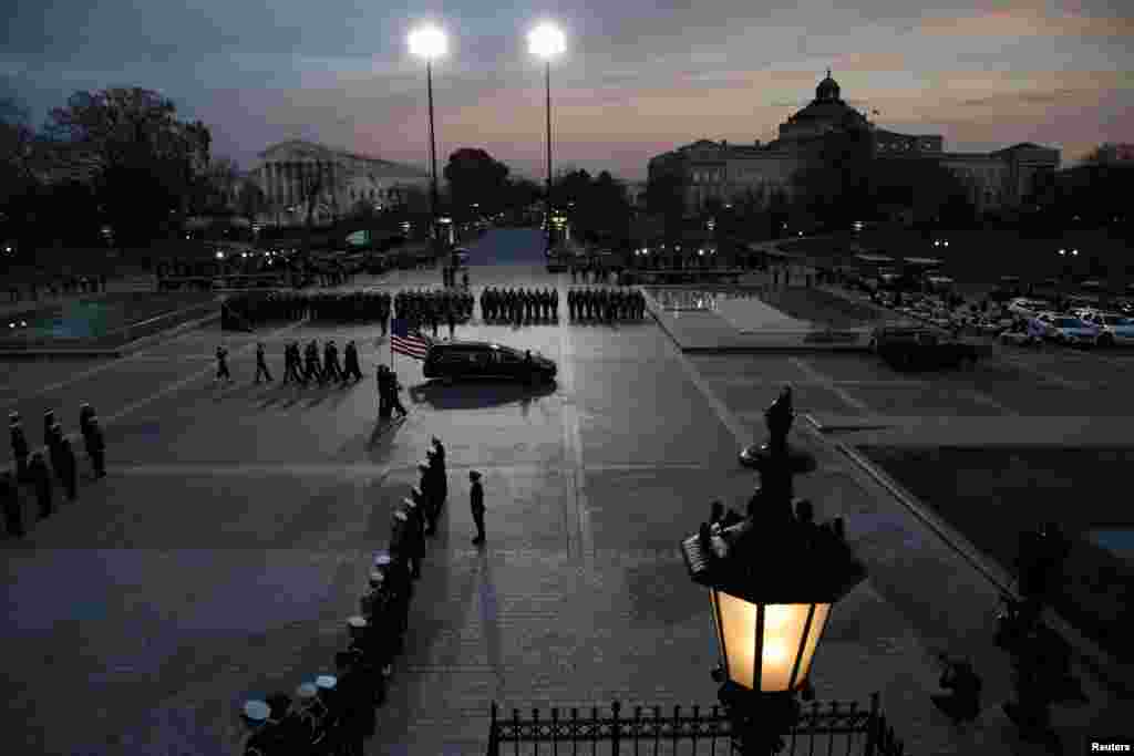 В понедельник гроб с телом бывшего президента США был доставлен в ротонду Капитолия, где в течение трех дней можно будет попрощаться с Джорджем Бушем-старшим.