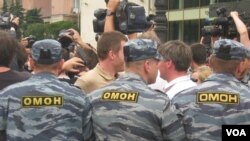 В это время к Удальцову и его товарищам стали подтягиваться сотрудники полиции. Один из них через мегафон заявил о том, что данная акция незаконна, и что ее участники могут быть задержаны. В ответ Сергей Удальцов предложил всем собравшимся мирно, не нарушая правил, двинуться в сторону Марсова поля. Как только колонна начала движение, ее плотным кольцом окружили ОМОНовцы и поодиночке стали отводить людей в автозаки.