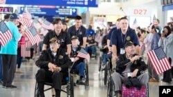 Группа ветеранов Второй мировой войны ждет посадки на самолет в международном аэропорту города Далласа, штат Техас. 31 мая 2024 года.