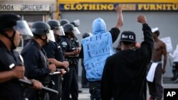 Небольшая группа протестующих отделилась от мирной демонстрации и пробежалась по улицам микрорайона Креншо, круша автомобили, разбивая окна в домах и офисах, и нападая на прохожих. Несколько демонстрантов ворвались в фирменный магазин и разбили витрины, прежде, чем были остановлены охраной магазина.